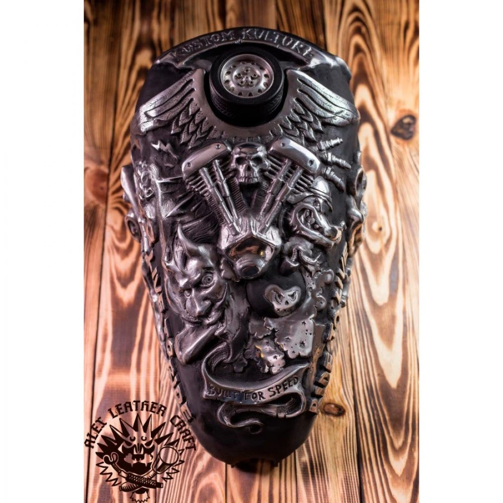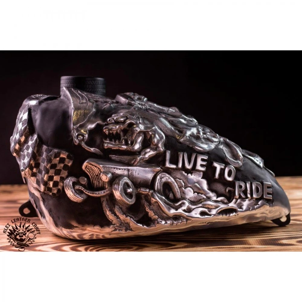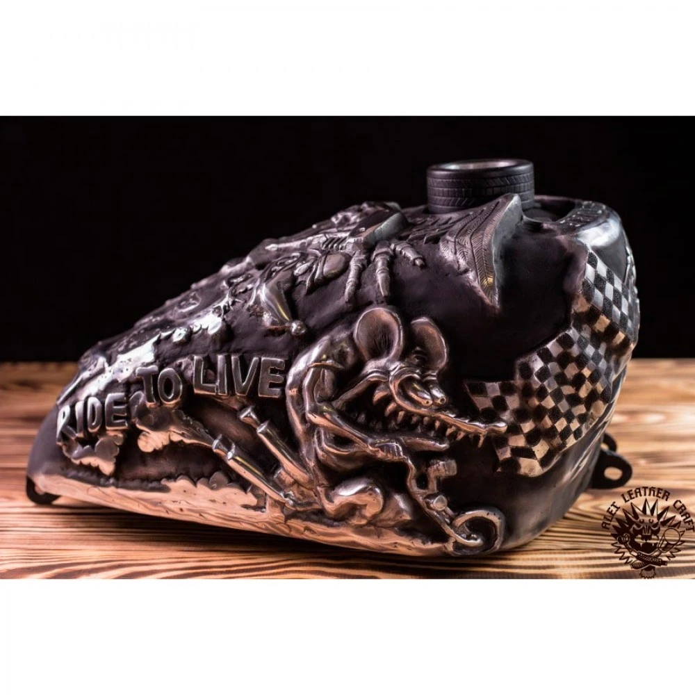 Als Negativform diente ein Sportster Tank (vor 2003 Modell). Dieser Tank kann auf den Großteil der Chopper Motorräder montiert werden sowohl zum fahren als auch für Show-Zwecke.
