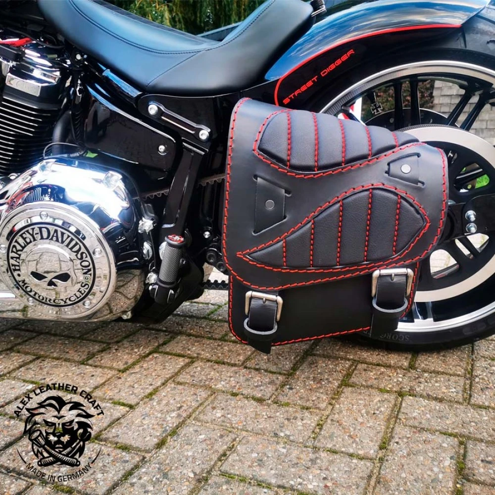 Motorrad Satteltasche Für Harley Davidson Softail Spider Schwarz Rot V2