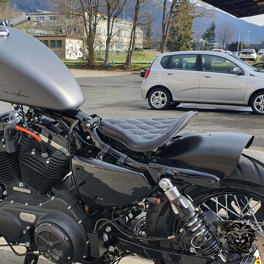 Du kaufst einen vielseitig einsetzbaren stillvollen Sitzbänk(Bobbersitz) von ALEX LEATHER CRAFT, der auf deinen Harley Davidson Sportster ab 2004 bis 2022 zugeschnitten ist.