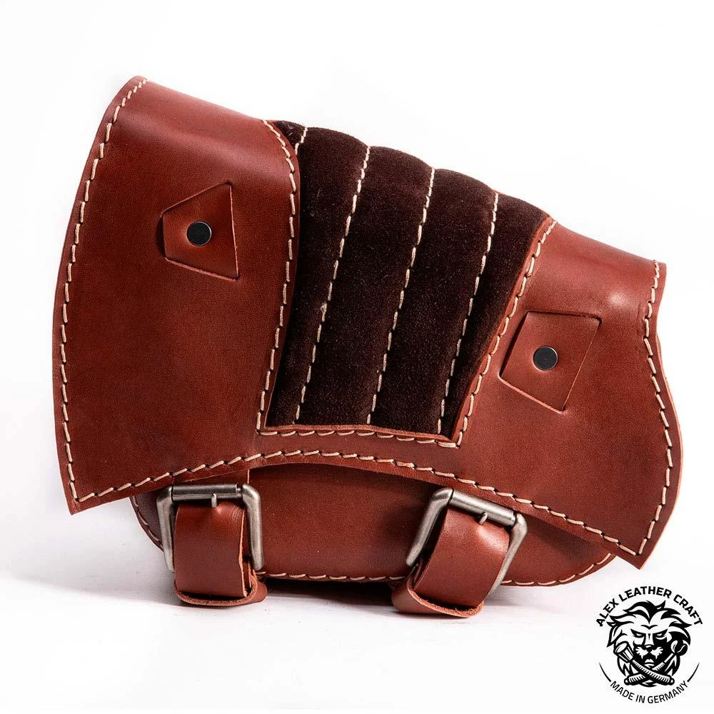 Jeder Motorradsitz und jede Satteltasche ist vollkommen per Hand gefärbt und genäht, was zu kleineren Abweichungen vom Bild führen kann.