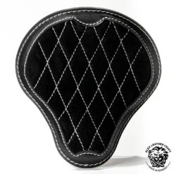 Sitz + Satteltasche Für H-D Softail Spider Rautenmuster Glanz Und Samt Schwarz Und Weiß