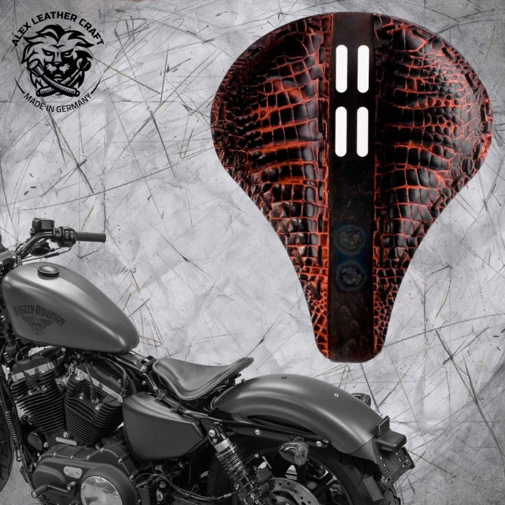 Solo Sitz + Montage Kit Harley Davidson Sportster 04-22 4Fourth Lang Kroko Tan Metall