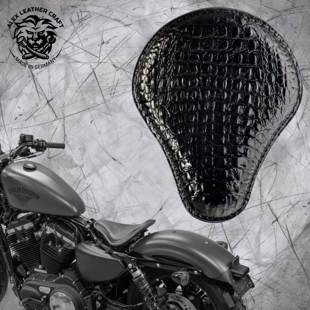 Solo Sitz + Montage Kit Harley Davidson Sportster 04-22 Kroko Schwarz