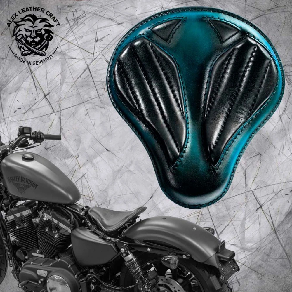 Solo Sitz + Montage Kit Harley Davidson Sportster 04-22 Kurz Tiffany Blau & Schwarz V2