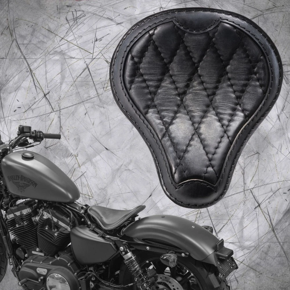 Solo Sitz + Montage Kit Harley Davidson Sportster 04-22 Vintage Schwarz Luxus Rautenmuster