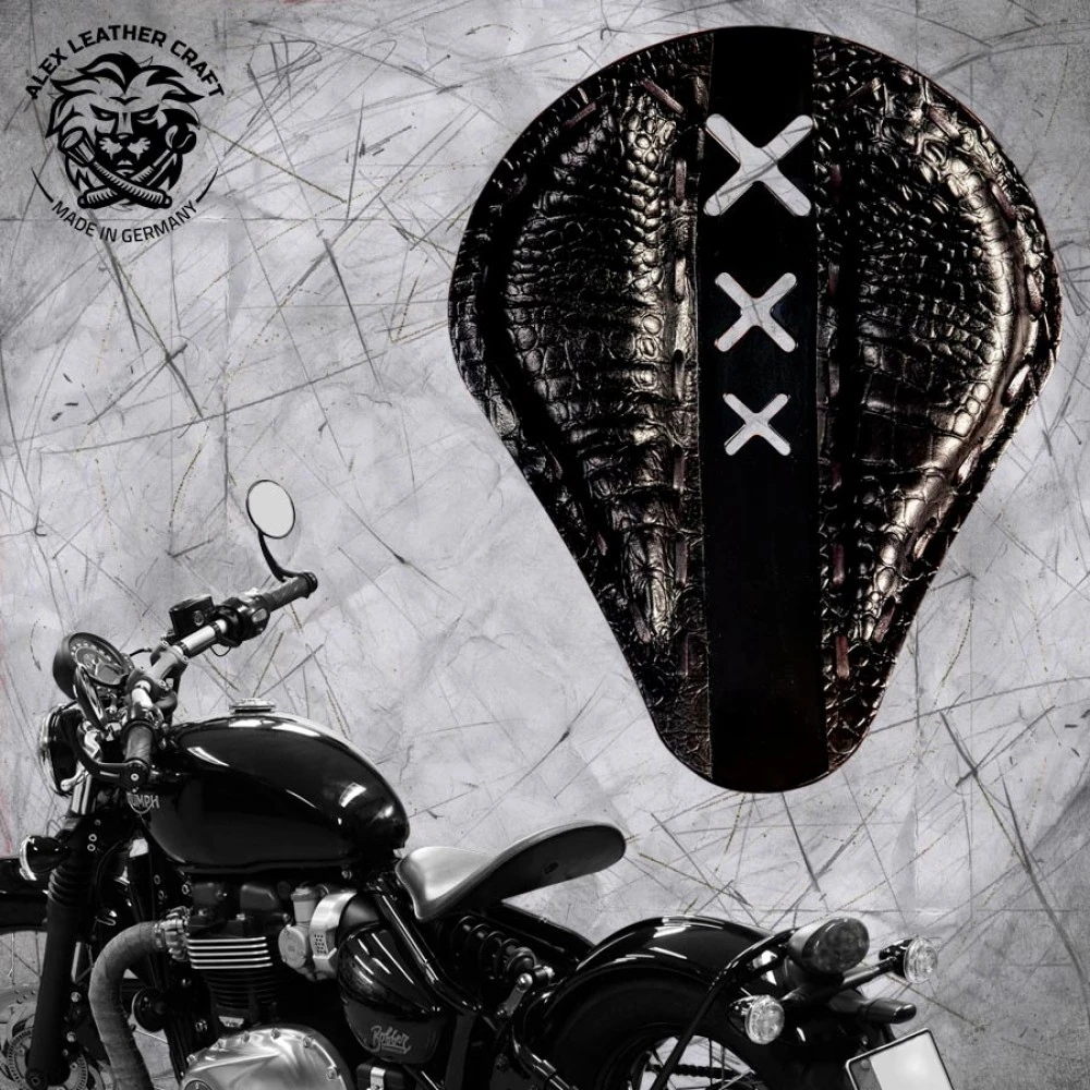 Du kaufst einen vielseitig einsetzbaren, stilvollen Bobbersitz von ALEX LEATHER CRAFT, der speziell auf Deine Triumph Bonneville Bobber, Bobber Black, Speedmaster ab 2016 zugeschnitten ist.
