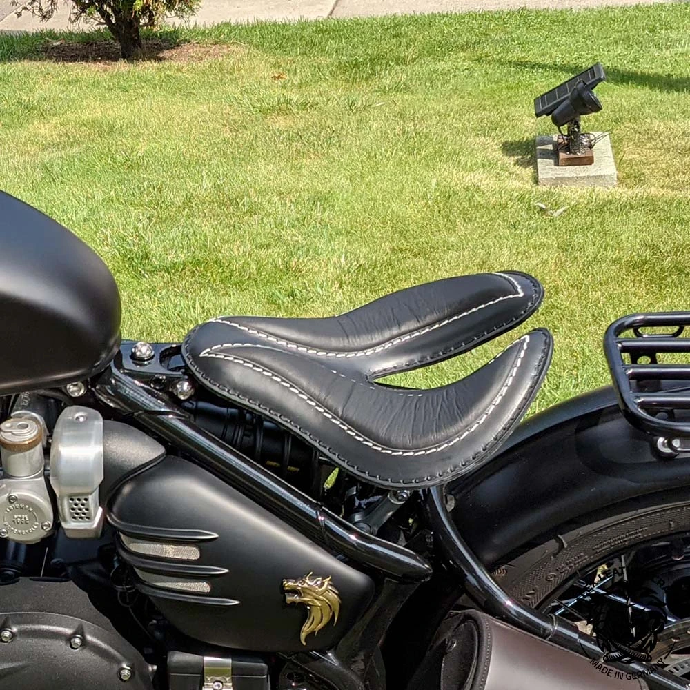 Jeder sitz für Triumph Bonneville Bobber ist vollkommen von Hand gefärbt und genäht, was zu kleineren Abweichungen vom Bild führen kann.