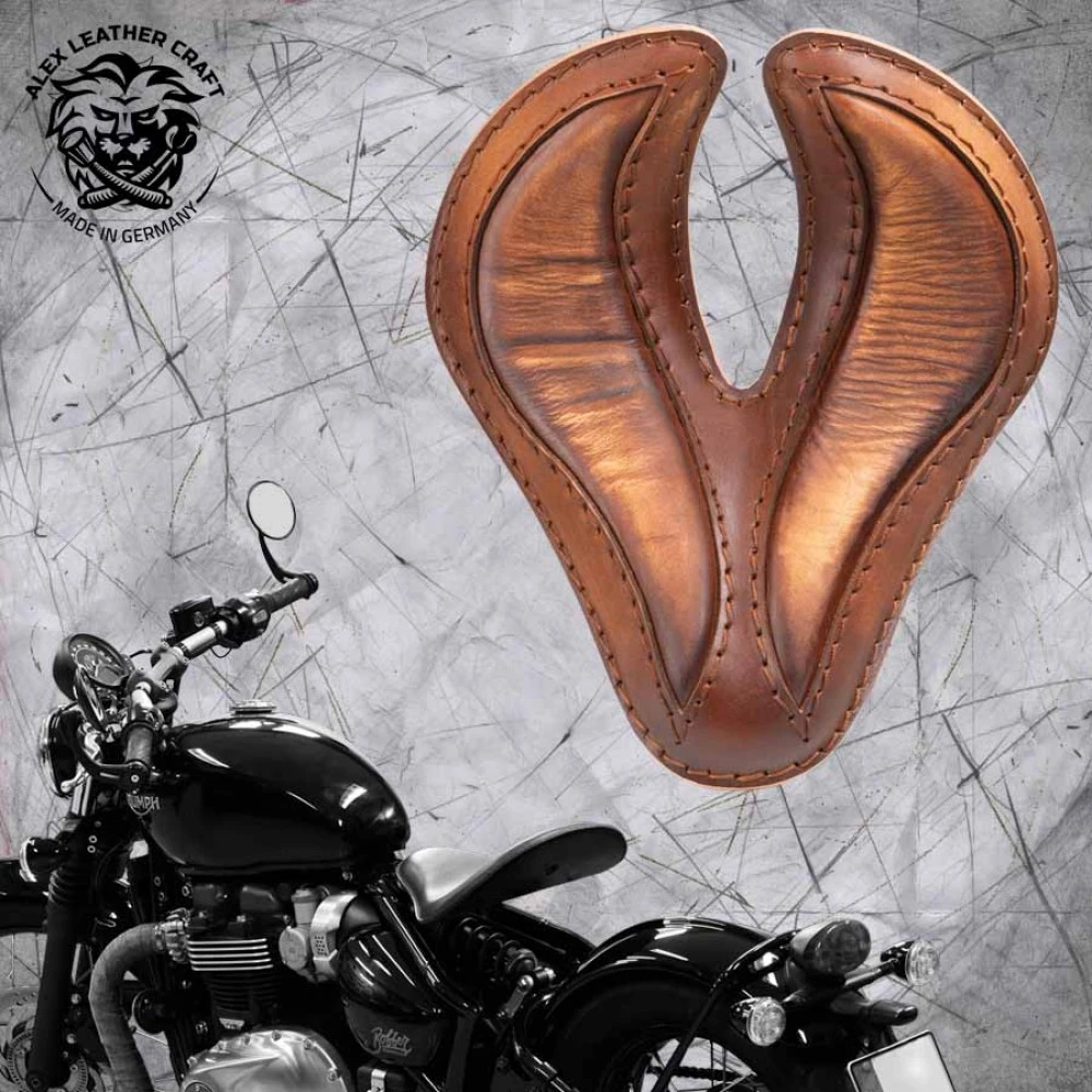 Jeder sitz für Triumph Bonneville Bobber ist vollkommen von Hand gefärbt und genäht, was zu kleineren Abweichungen vom Bild führen kann.