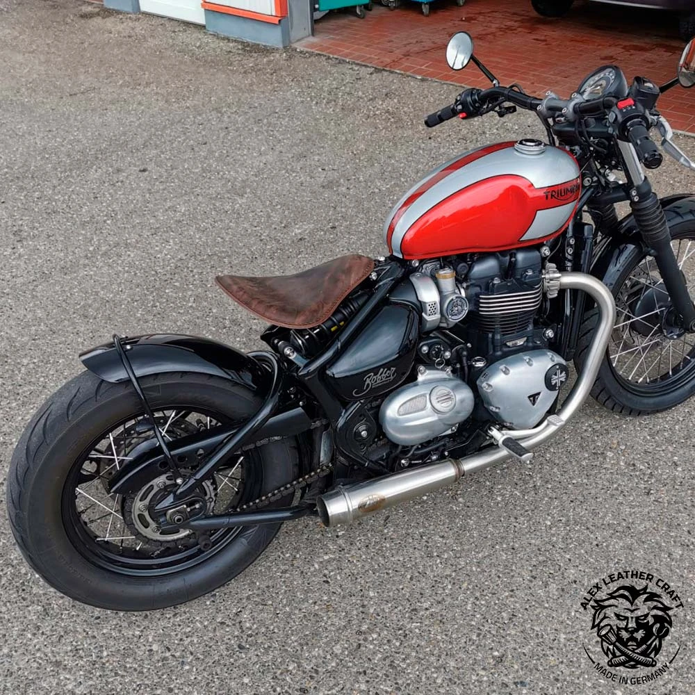 Du kaufst einen vielseitig einsetzbaren, stilvollen Bobbersitz von ALEX LEATHER CRAFT, der speziell auf Deine Triumph Bonneville Bobber, Bobber Black, Speedmaster ab 2016 zugeschnitten ist.