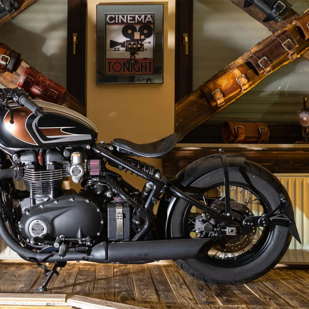 Du kaufst einen vielseitig einsetzbaren, stilvollen Bobbersitz von ALEX LEATHER CRAFT, der speziell auf Deine Triumph Bonneville Bobber, Bobber Black, Speedmaster from 2016 zugeschnitten ist.
